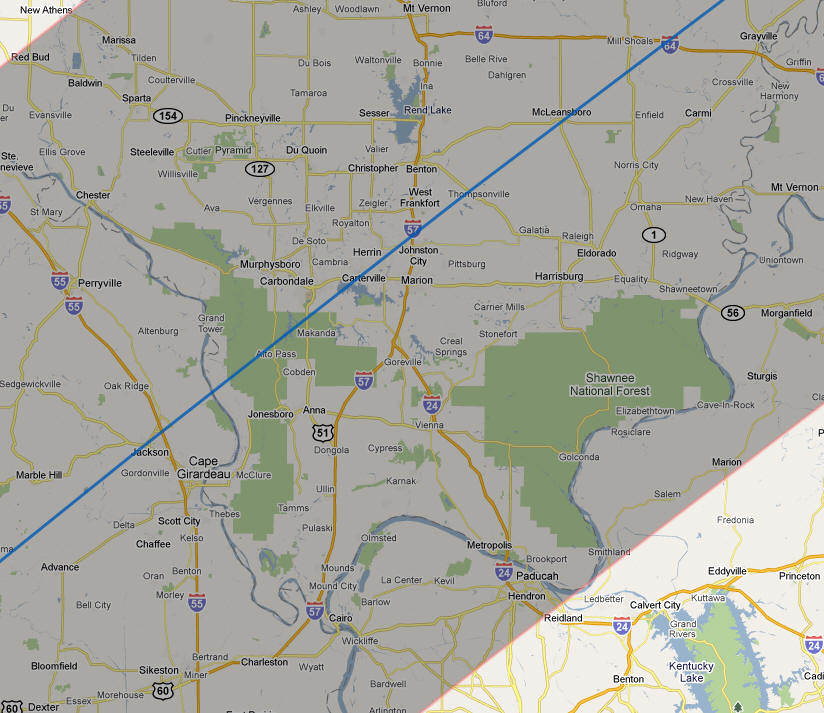 The path of the AD 2024 eclipse over Egypt, Illinois